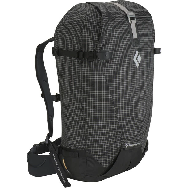 - active, ergonomic carrying system with SwingArm shoulder straps, hip belt pocket made of stretch fabric and material loop