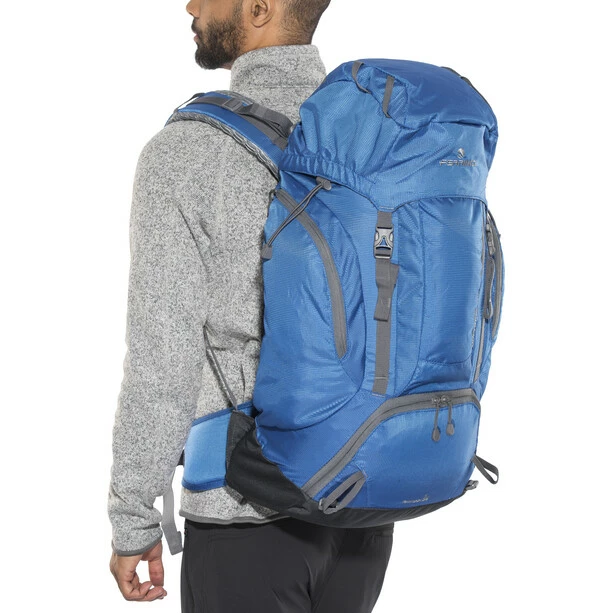 Very versatile and compact trekking rucksack with optimum ventilation at the back. This rucksack offers various equipment and is for universal application: whether for a day trip or a hiking tour, your stuff is packed well and organized best: compartment in the top cover, safety compartment, two side pockets, front pocket, small bag on the hip belt and an interior bag at the back. The bottom part is easily accessible thanks to a big zipper. Two fixation points for sticks and ice pick and straps on the bottom for a mat. Compatible with drinking system and rain cover.