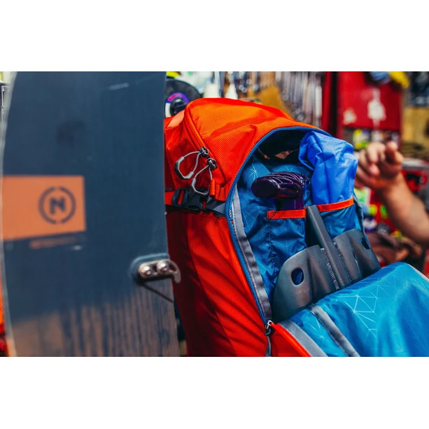 - Front zipper access avalanche safety pocket with tool compartments