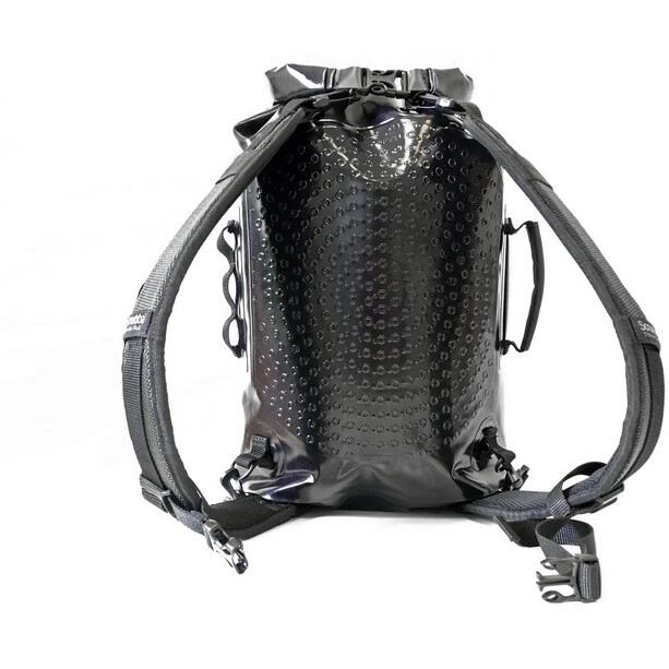 Versatile and weatherproof trekking backpack equipped with numerous features for hikers and outdoor enthusiasts. It contains enough space for laptop, clothes and equipment and keeps everything dry. The backpack allows efficient washing thanks to the built-in flexible washboard. Thanks to the non-slip surface, you will get the result of a machine wash in just a few minutes. After washing, the clothes can be compressed in the backpack, the water pressed out of the clothes and drained through the valve. Filled with water, the backpack can be turned into a refreshing shower.