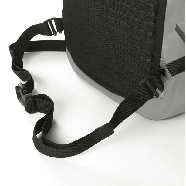 Orbit comes in a sober gray design that offers 360° visibility from all angles through reflective details. In addition to this, you can use the lash points on the back or front to easily snap on visibility lights.